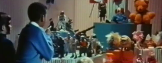 A group of children are fascinated by a display of toys. clowns, animals, dolls, which are large and exciting. To soldiers, lifelike and illuminated, act out a war that become all too much like the real thing. The children are still watcting the soldier goes up in flames, melting. War toys are meant for fun, when war is meant for killing – and in war nowaday children invariably come off the worst.